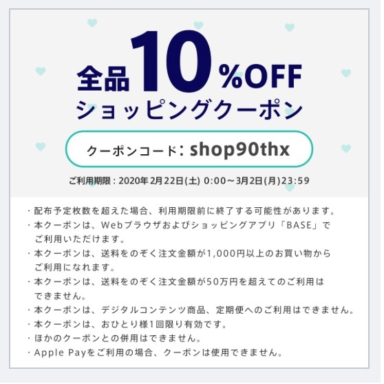 BASEスペシャルクーポンの期限が明日までとなりました! | petit ami...