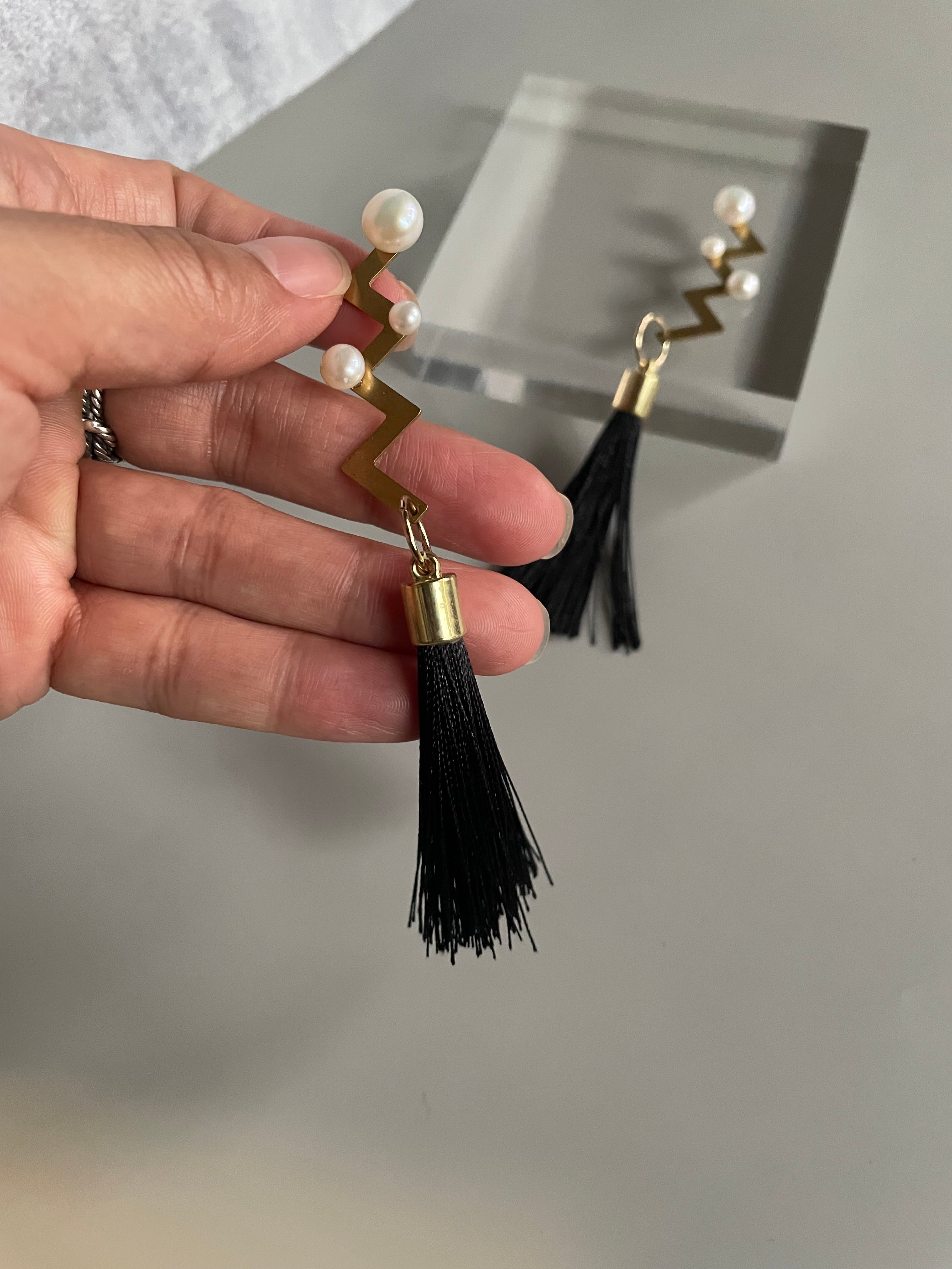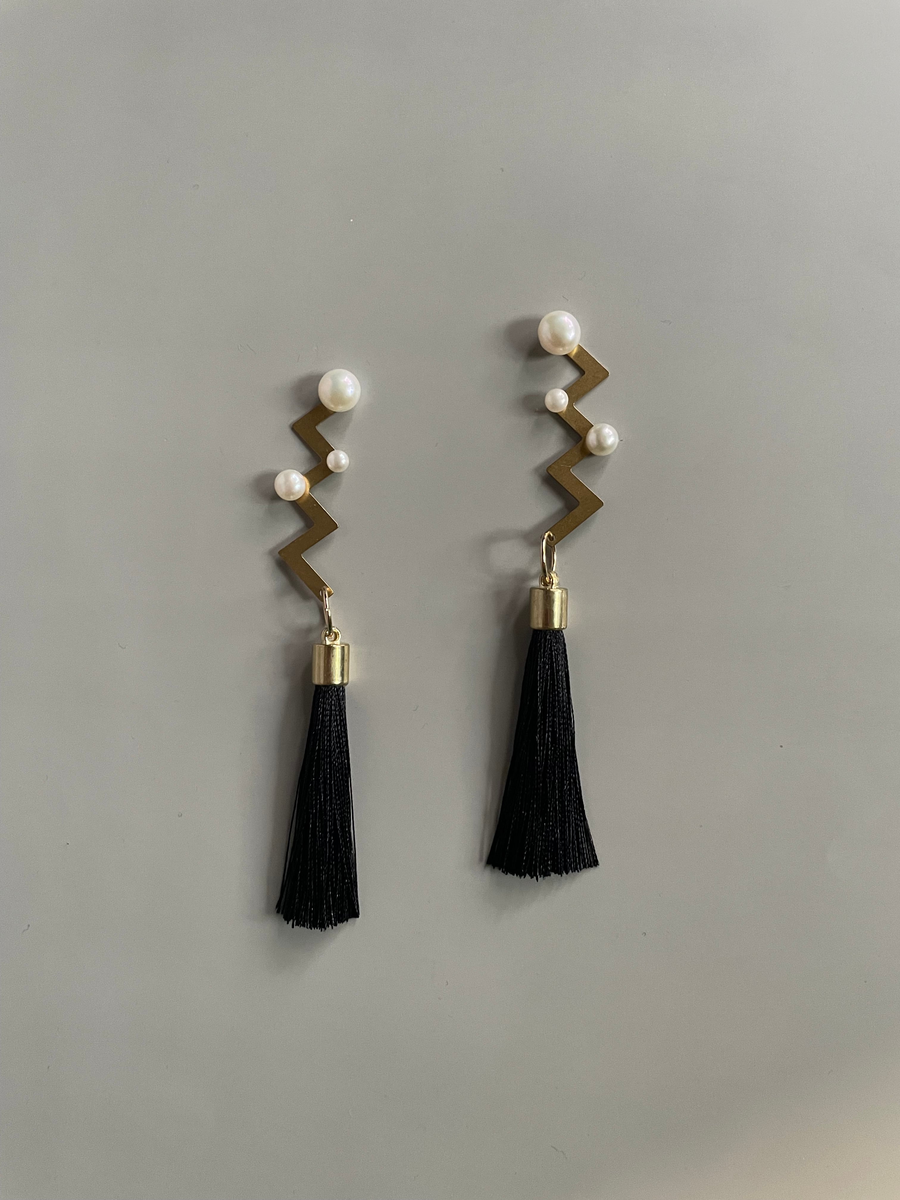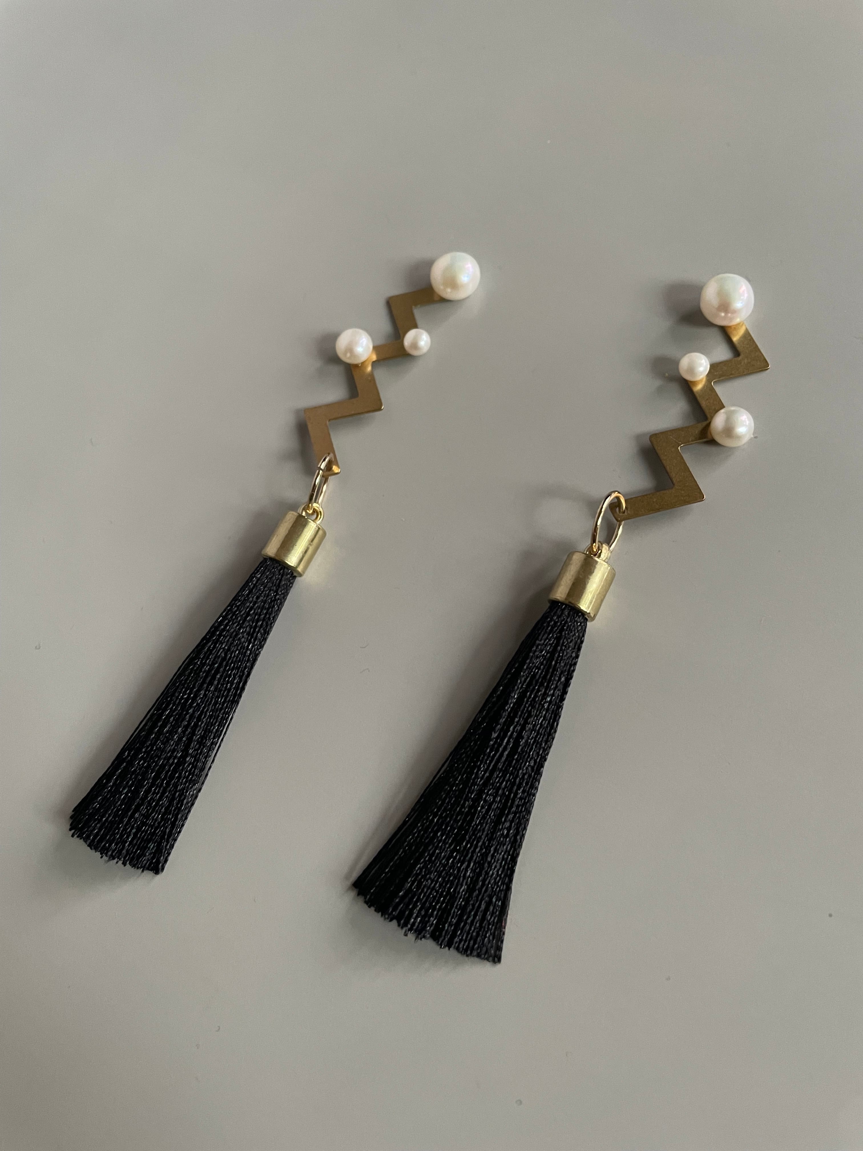 このアクセサリーは、ギザギザな真鍮のパーツに輝くパールが散りばめられたユニークなデザインが特徴です。デイリースタイルにちょっとした遊びを加え、周囲の視線を惹きつけること間違いなし!特別な日だけでなく、普段使いにもぴったりのアイテムです。