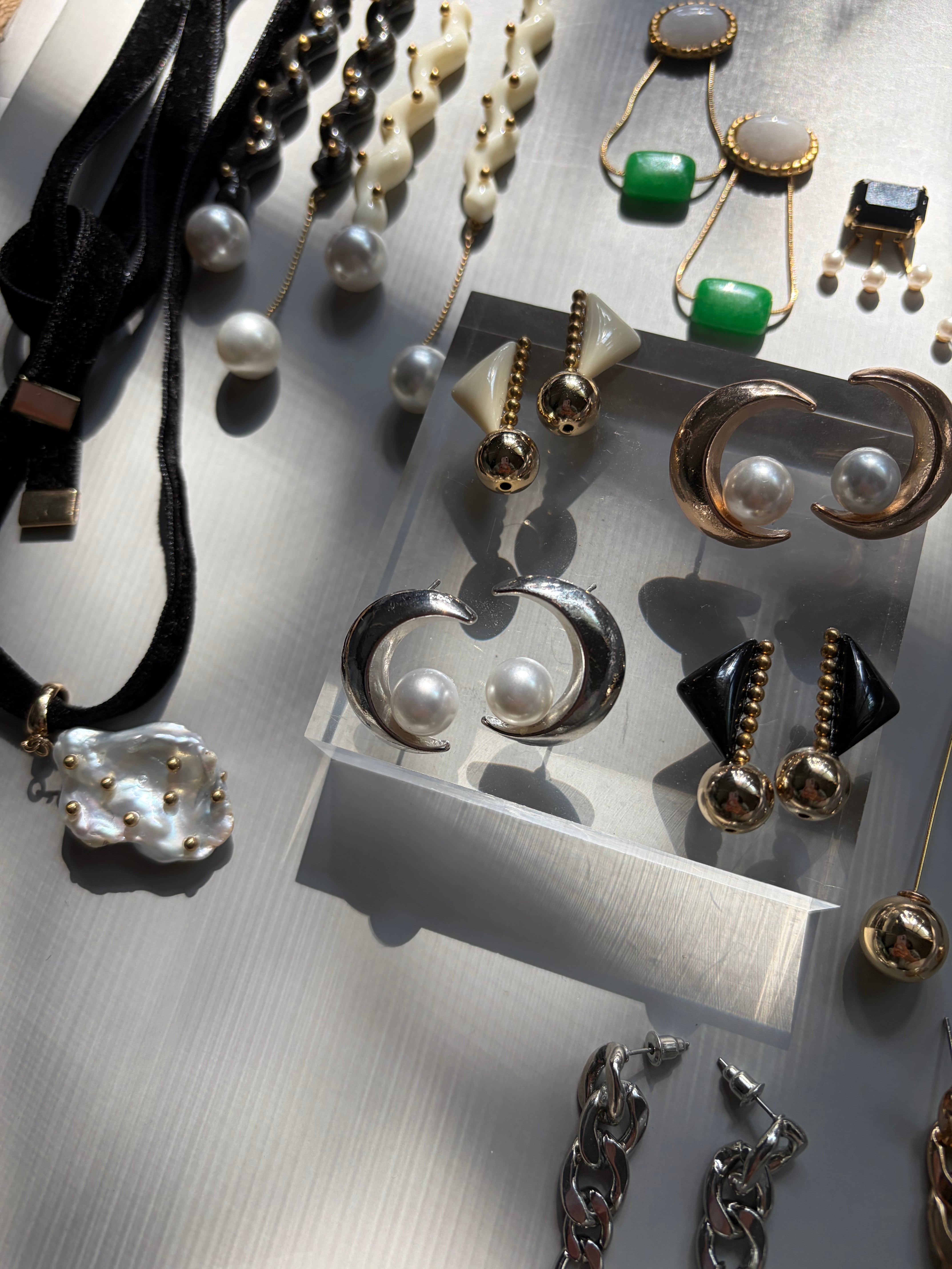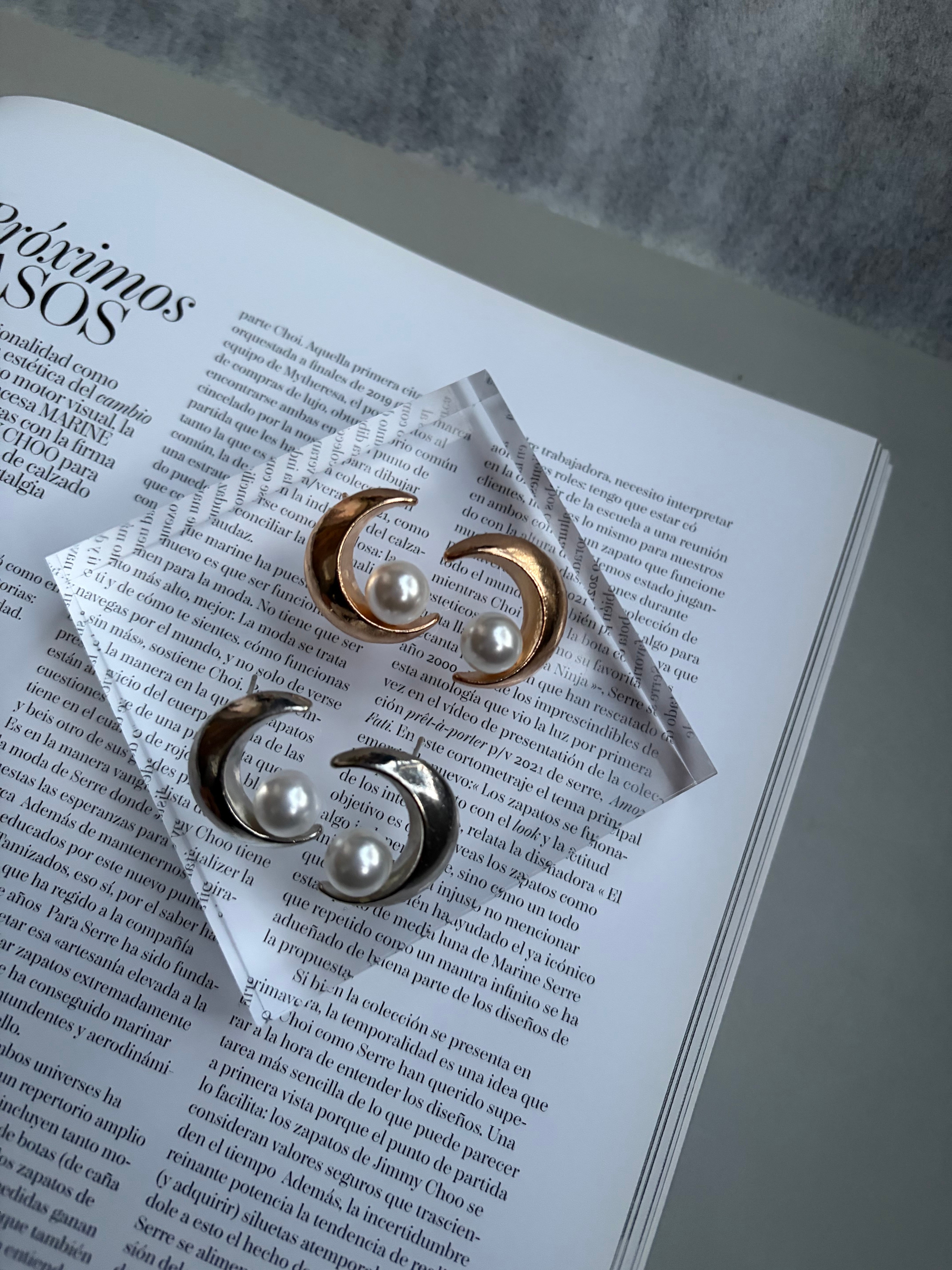 このピアスは、三日月に小さな月が乗ったデザインが特徴で、上品さと遊び心を両立させています。特別な日にはもちろん、普段のお出かけにもぴったりで、耳元にあしらうだけで魅力的な印象を与えてくれます。