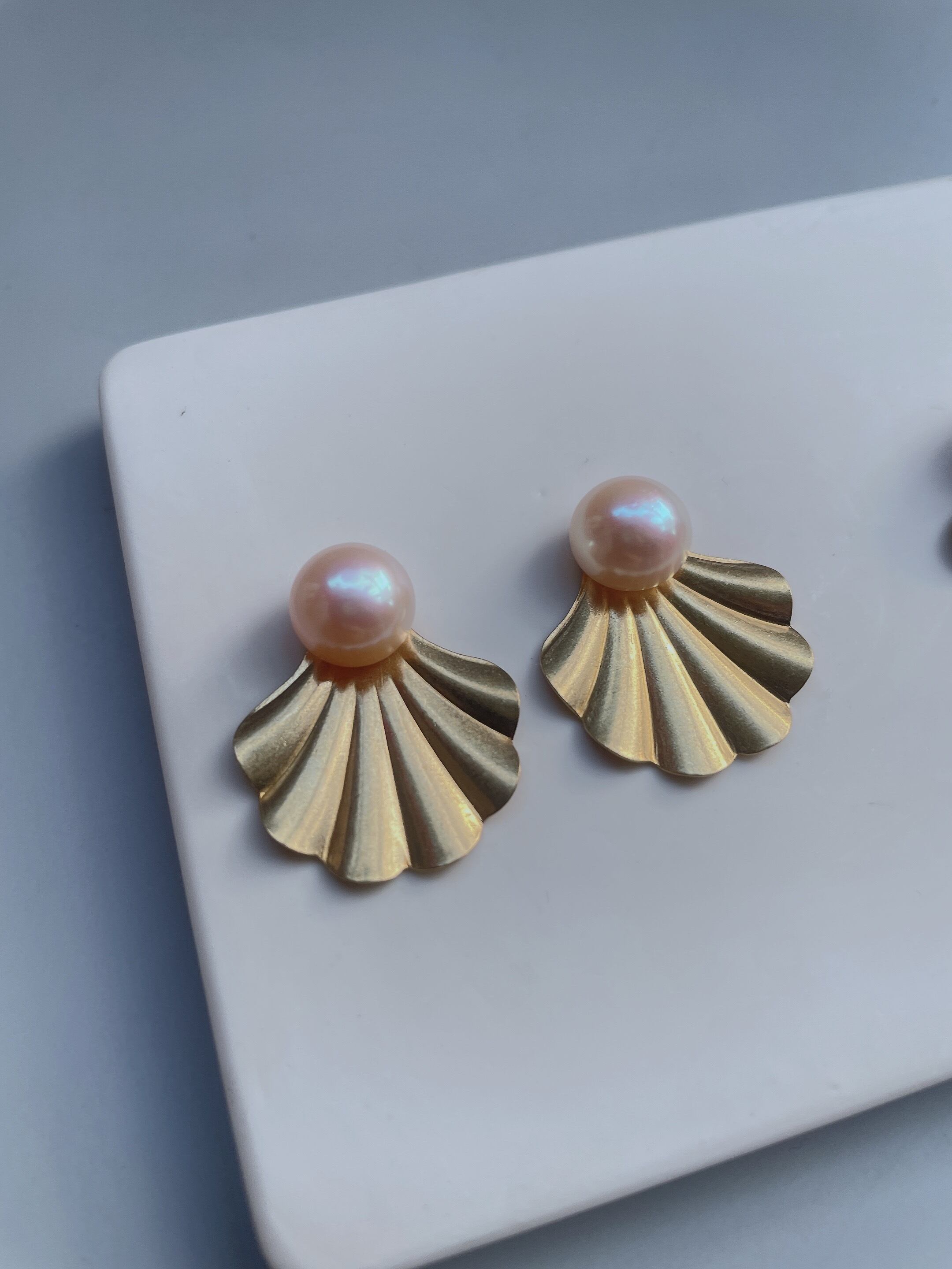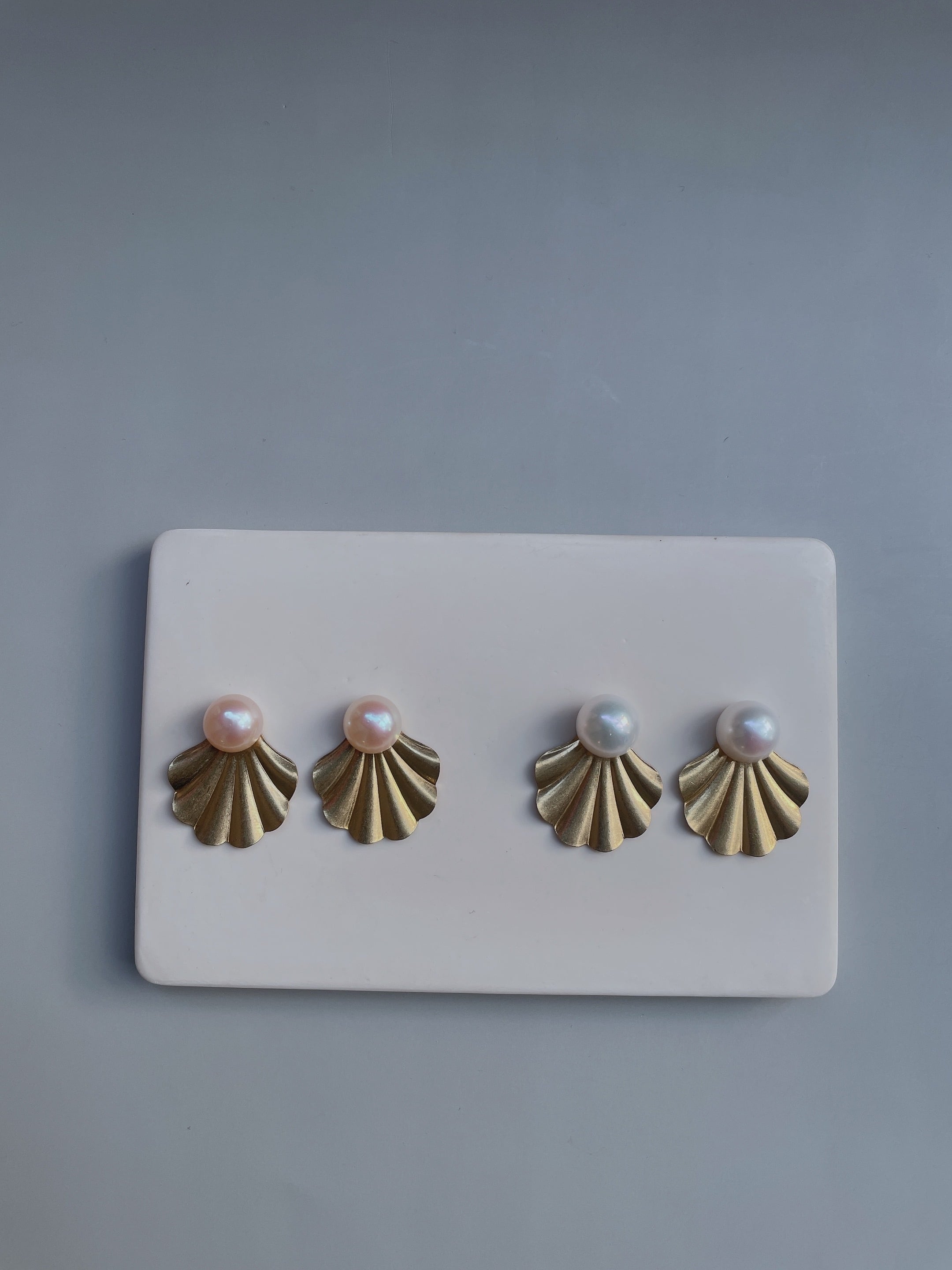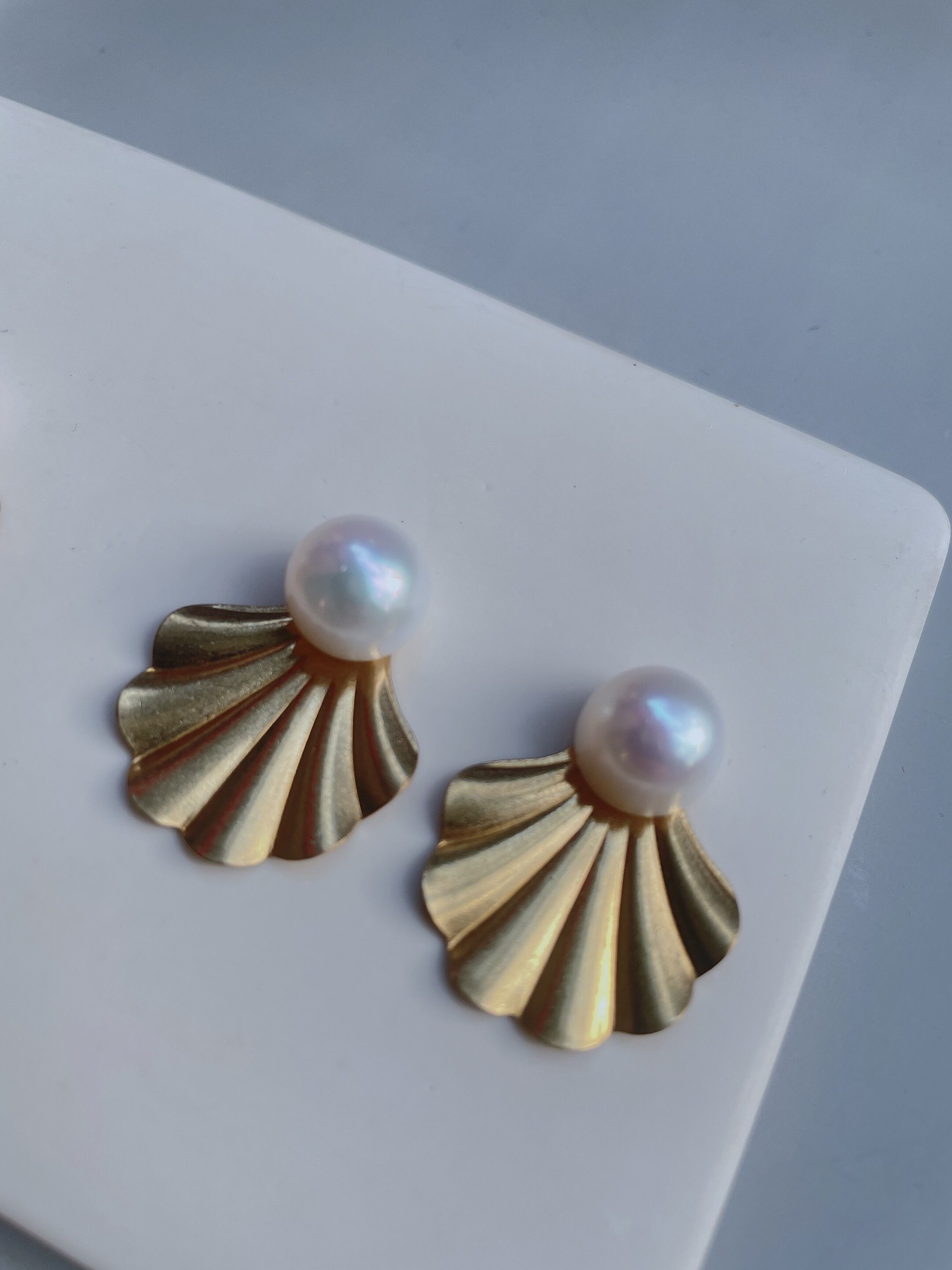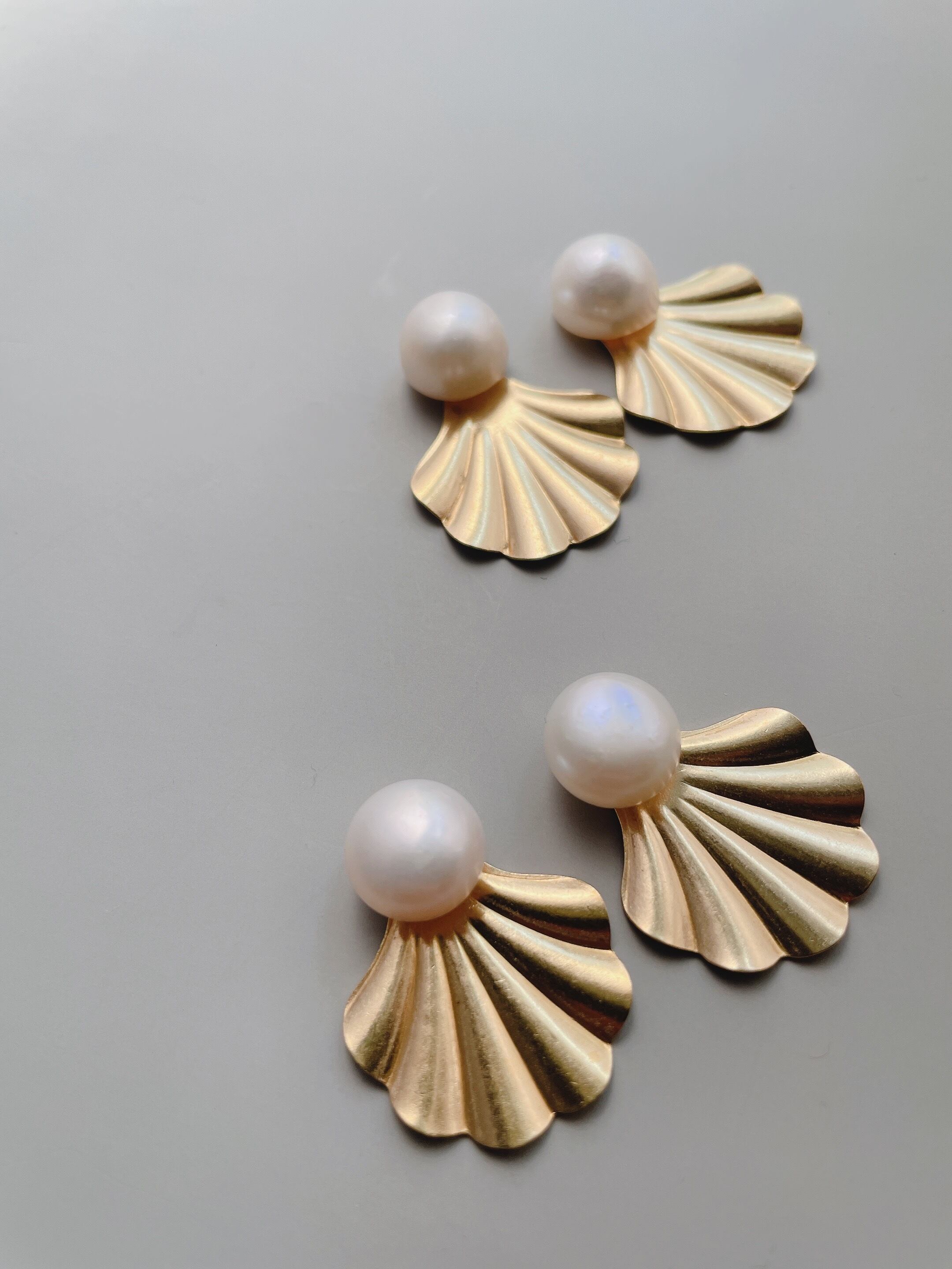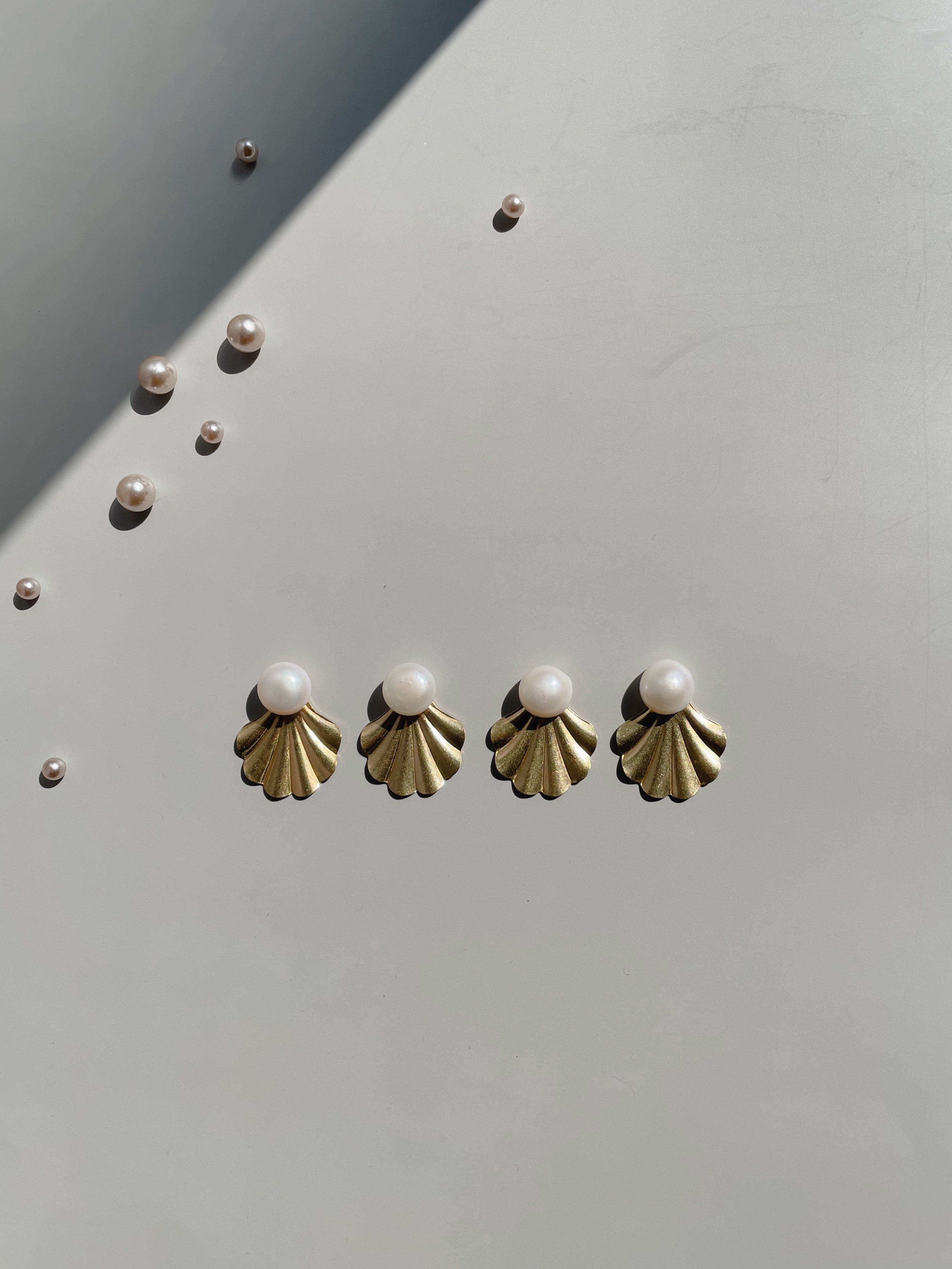 貝の中からパールが飛び出たようなキュートなデザインが、女性らしい印象を演出します。